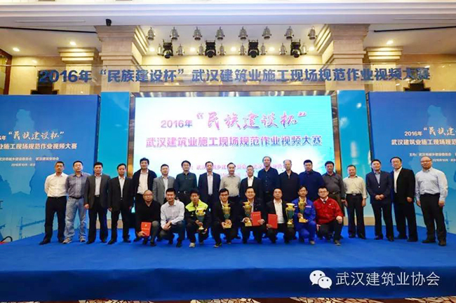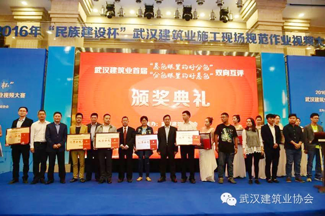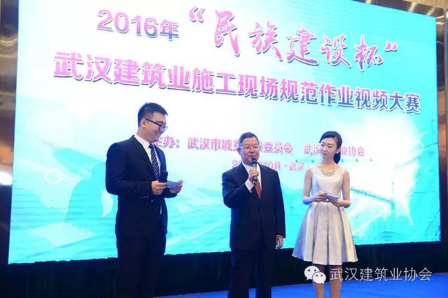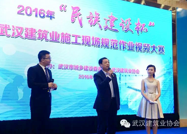 10月19日上午,由武汉市城建委和武汉建筑业协会联合举办的2016年“民族建设杯”武汉建筑业施工现场规范作业视频大赛决赛成功召开。中国施工企业管理协会秘书长尚润涛、湖北省总工会副主席刘富国、湖北省建管局副局长张晓曦、武汉市城建委副主任夏平、武汉市建管办主任汤炜、武汉建筑业协会副会长、中铁大桥局董事长刘自明、副会长程理财、副会长高林、副会长吴海涛、副会长兼秘书长李淼磊,以及中建三局副总经理李勇、中国建设报建筑半月谈主编王燕生、中华建设杂志社社长柯善北等领导嘉宾出席会议。