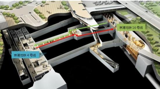在16号线西苑站南侧约120米处,是已经开通运营的4号线西苑站。16号线与4号线在西苑站“牵手”,两线通过两条约6米宽、120米长的Y字形通道在站厅层实现换乘,宽敞且在同层的换乘通道将为乘客节省时间,方便乘客快捷换乘。