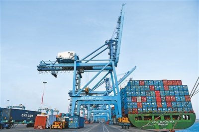 肯尼亚蒙巴萨港是东非第一大港,在东非地区占有重要地位。图为由中国路桥公司承建的肯尼亚蒙巴萨港第19号泊位。