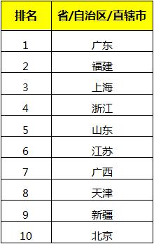在具体排名上,广东、福建、上海、浙江、山东分列“一带一路”省市参与度前五,2016年进入这一榜单的则是广东、浙江、上海、天津和福建。福建从2016年的第5名提升至2017年的第2名,提升幅度明显。广西、新疆首次进入前十名。