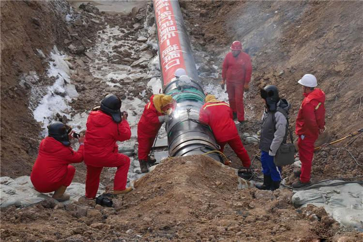 工作人员不惧严寒在零下十几度的天气下焊接中俄原油二线贯通工程最后一道焊口。(来源:南方都市报)