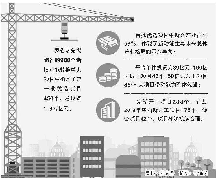 据介绍,首批优选项目中新兴产业占比59%,体现了新动能主导未来总体产业格局的示范导向;平均单体投资为39亿元,100亿元以上项目45个,50亿元以上项目85个,大项目带动能力整体较强;先期开工项目233个,计划2018年底前新开工项目175个,储备项目42个,项目梯次接续合理。
