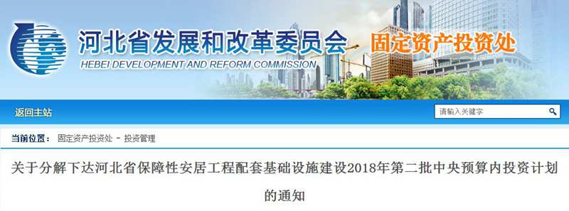 近日,省发改委、省住建厅下发《关于分解下达河北省保障性安居工程配套基础设施建设2018年第二批中央预算内投资计划的通知》,我省6市及雄安新区获批中央预算内投资27.533亿,其中雄安获批22.8亿。一起来看↓↓