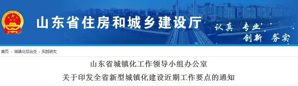 近日山东省城镇化工作领导小组办公室发布《关于印发全省新型城镇化建设近期工作要点的通知》