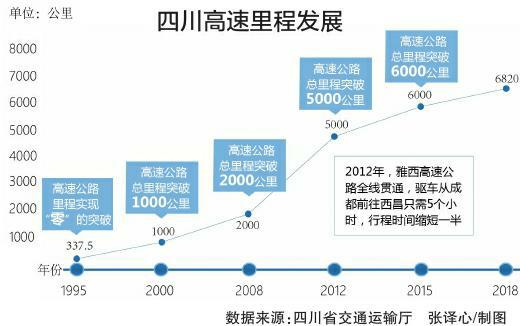 1995年,四川第一条高速公路建成通车,通车里程337.5公里,实现了四川省高速公路里程“零”的突破。到2000年,四川省高速公路总里程增至1000公里;2008年,四川省高速公路迎来迅猛发展期,至2012年,四川省高速通车里程已突破5000公里,呈现“爆发式”增长。