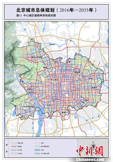 图为北京城市总体规划(2016年-2035年)中的中心城区道路网系统规划图。资料图