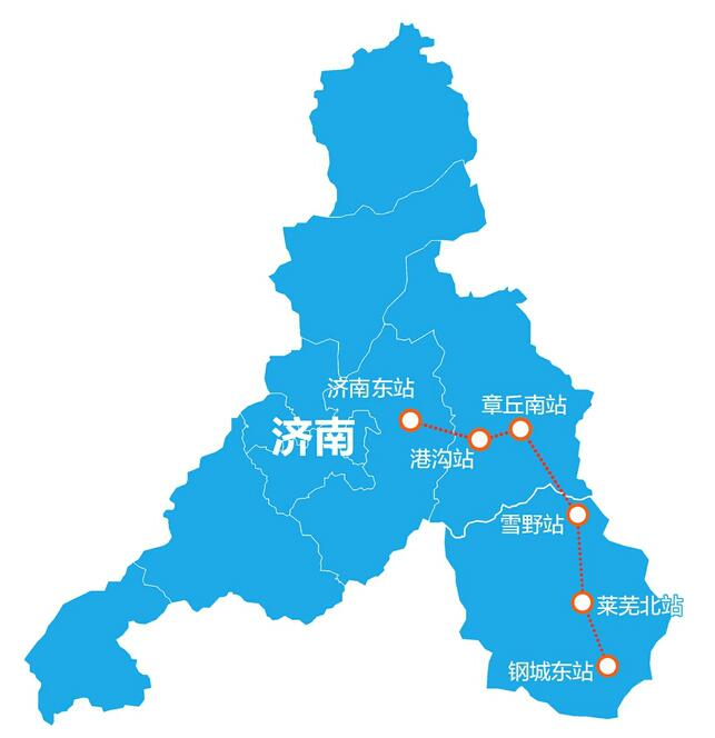 根据本次公示的消息,新建济南至莱芜高速铁路项目位于山东省济南市境内。线路整体呈西北-东南走向,自济南东客站向东引出,上跨在建的济青高铁、石济客专及既有东绕城高速(京沪高速)后拐向南,沿东绕城高速西侧向南至京沪高速以南拐向东,沿京沪高速南侧向东进入章丘区,在章丘三德范村西侧向南进入莱芜区雪野旅游区,向南经原莱城区止于钢城东站。
