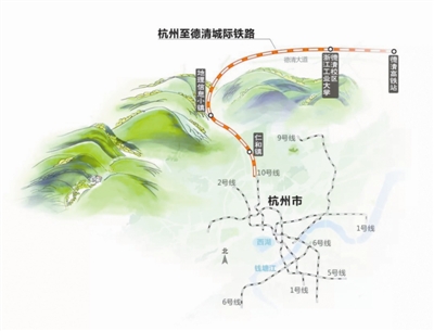 杭德城际铁路项目是《浙江省都市圈城际铁路二期建设规划》重要项目。根据规划,杭德城际铁路项目总投资166.5亿,共设12个站点。起自杭州地铁10号线新兴路站,经过余杭仁和街道后进入德清,途经德清下渚湖街道、地理信息小镇、德清中心城区,然后沿德清大道向东,止于德清高铁站。