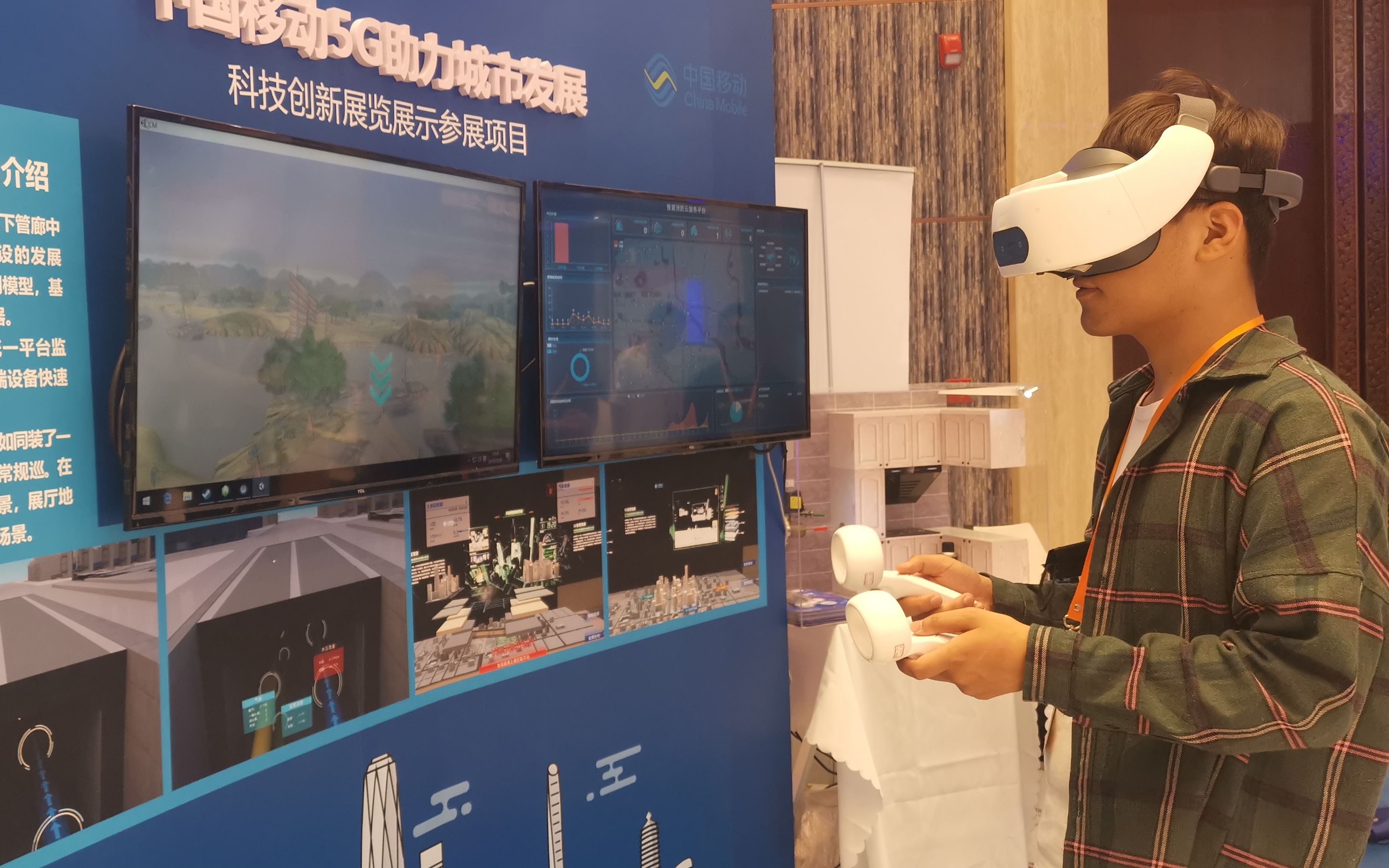 在京交会北京城市副中心分会场,观众体验AR眼镜。摄影/新京报记者 张璐