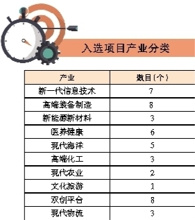 从产业分类看,青岛入选项目含新一代信息技术项目7个,其中包括总投资180亿元的12英寸模拟半导体芯片项目、总投资150亿元的协同式集成电路制造(CIDM)项目等;高端装备制造项目8个,其中包括总投资20亿元的中电建中德高新绿色建筑产业园项目、总投资10亿元的高速磁浮系统研制工程项目等;新能源新材料项目3个,包括总投资10亿元的道恩高分子新材料项目;医养健康项目6个,包括总投资200亿元的青岛西海岸国际体育文化中心项目;现代海洋类项目5个,包括总投资42.3亿元的华录山东总部基地项目;高端化工项目3个,包括总投资30.1亿元的30万吨/年高端ABS 树脂项目;现代农业项目2个,包括总投资130亿元的桃李春风田园康养综合体项目;文化旅游项目1个,为总投资12亿元的西海艺术湾项目;双创平台项目8个,包括总投资58.8亿元的海尔云谷智慧产业园项目;现代物流项目3个,包括总投资30亿元的青岛利群物流项目、总投资20亿元的苏宁(上合)跨境电商产业园项目。