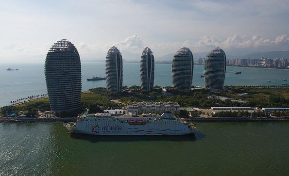 一艘邮轮停靠在三亚凤凰岛国际邮轮港。记者 杨冠宇 摄