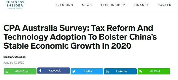 另据美国商业内幕网站报道,澳洲会计师公会(CPA Australia)16日发布的《2020年中国经济前景与企业信心调查》报告显示,今年创新科技的广泛应用与财税改革的稳步推进,将对中国经济产生最积极的影响。
