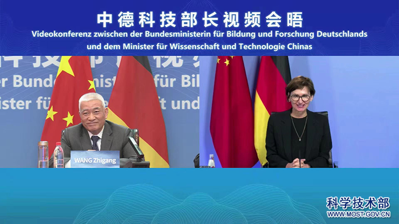 2022年4月11日,科技部部长王志刚与德国联邦教育与研究部部长贝蒂娜·施塔克-瓦青格(Bettina Stark-Watzinger)举行视频会晤,围绕落实两国元首共识、科技创新战略规划对接、务实推进双边科技创新合作等深入交换意见。