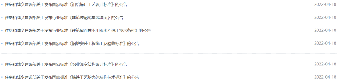 4月18日,住建部发布4项国家标准,自2022年5月1日起实施;两项行业标准,自2022年3月1日起实施。其中: