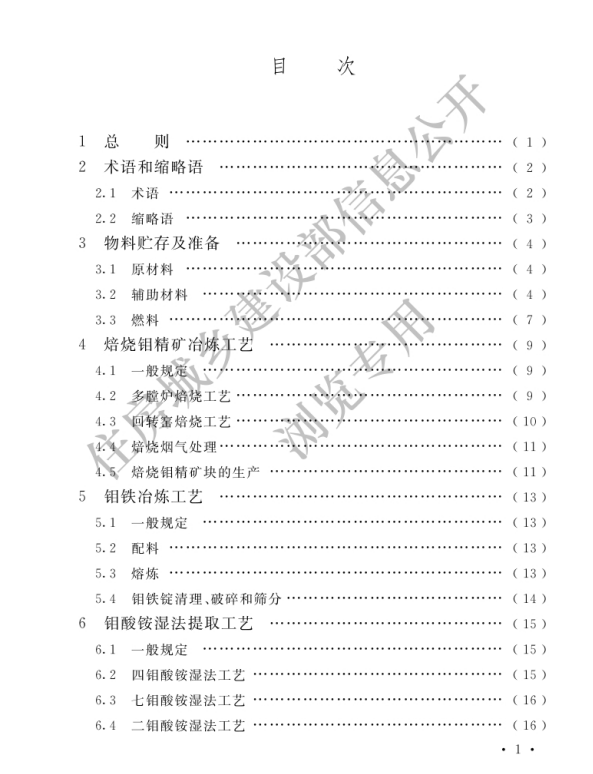 《钼冶炼厂工艺设计标准》