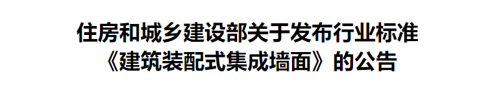 现批准《建筑装配式集成墙面》为建筑工业行业产品标准,编号为JG/T579-2021,自2022年3月1日起实施。