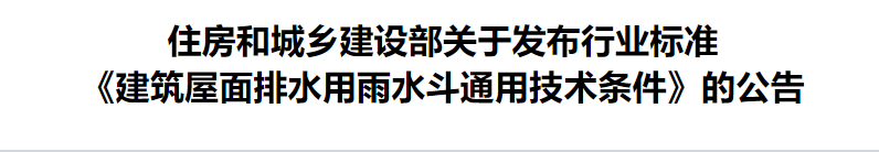 现批准《建筑屋面排水用雨水斗通用技术条件》为城镇建设行业产品标准,编号为CJ/T245-2021,自2022年3月1日起实施。原《虹吸雨水斗》(CJ/T245-2007)同时废止。