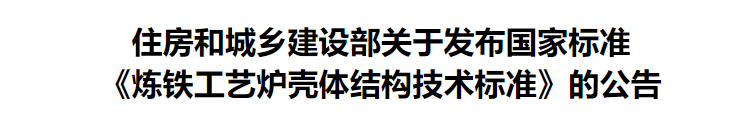现批准《炼铁工艺炉壳体结构技术标准》为国家标准,编号为GB/T50567-2022,自2022年5月1日起实施。原国家标准《炼铁工艺炉壳体结构技术规范》(GB50567-2010)同时废止。