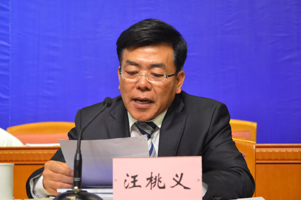 汪桃义副会长宣读关于第七届理事会会长、副会长及秘书长组成人选的议案