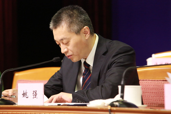姚强副会长宣读关于调整内设机构及增设分支机构的议案